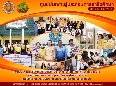 คณะผู้บริหาร ครูและบุคลากรทางการศึกษา วิทยาลัยเทคนิคพัทยา ศึกษาดูงาน ด้านการดำเนินงานของศูนย์การเรียนรู้ในสถานศึกษา ในวันที่ 26 กันยายน 2565 ณ วิทยาลัยอาชีวศึกษานครราชสีมา |