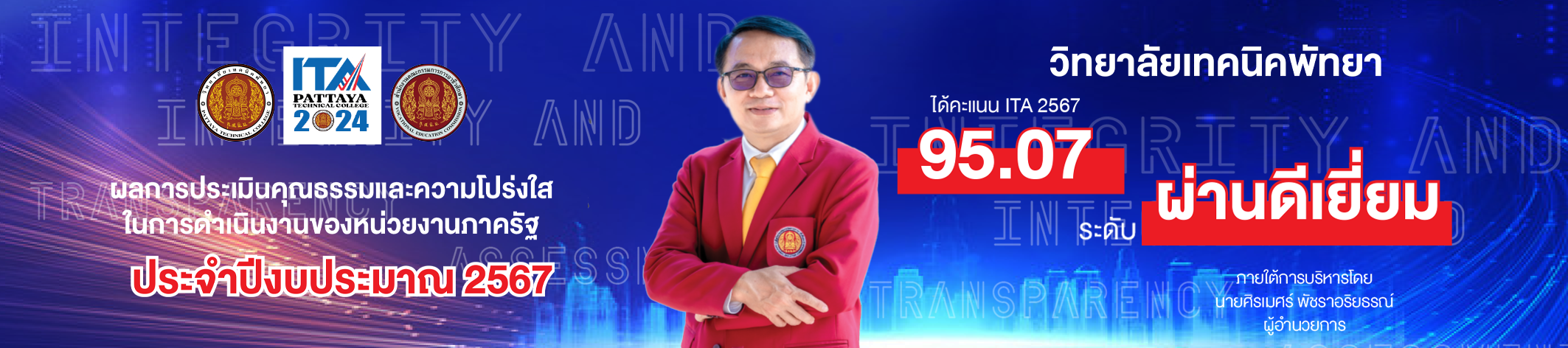 ประชาสัมพันธ์วิทยาลัยเทคนิคพัทยา เรื่อง ผลการประเมินคุณธรรมและความโปร่งใสในการดำเนินงานของหน่วยงานภาครัฐ ประจำปีงบประมาณ 2567