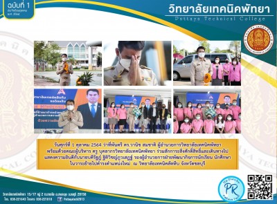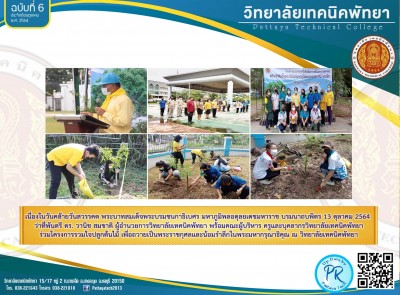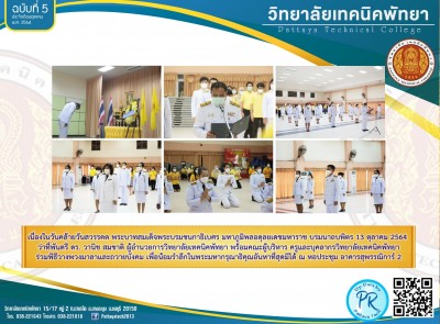 64 10 13 พิธีวางพวงมาลาและถวายบังคม เนื่องในวันคล้ายวันสวรรคต พระบาทสมเด็จพระบรมชนกาธิเบศร มหาภูมิพลอดุลยเดชมหาราช บรมนารถบพิตร เพื่อน้อมรำลึกในพระมหากรุณาธิคุณอันหาที่สุดมิได้ ณ หอประชุม อาคารสุพรรณิการ์ 2 วิทยาลัยเทคนิคพัทยา