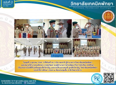 64 10 06 พิธีรับเตรียมลูกเสือวิสามัญและประดับแถบสองสี ลูกเสือวิสามัญ วิทยาลัยเทคนิคพัทยา ประจำปีการศึกษา 2564 ณ ห้องประชุมชั้น 4 อาคารสุพรรณิการ์ 7 วิทยาลัยเทคนิคพัทยา