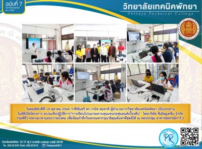 64 10 14 โครงการอบรมเชิงปฎิบัติการ การเขียนโปรแกรมควบคุมแขนกลหุ่นยนต์เบื้องต้น โดย บริษัท ซีเอ็ดยูเคชั่น จำกัด ณ หอประชุม วิทยาลัยเทคนิคพัทยา