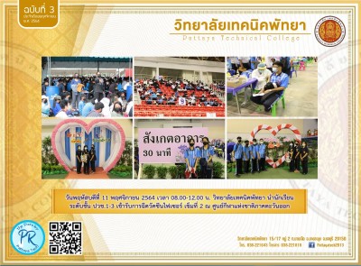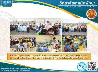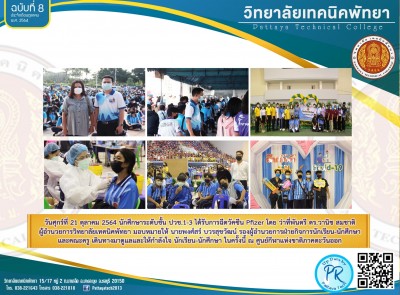 64 10 21 นักเรียนระดับ ปวช ชั้นปีที่ 1 ถึง 3 วิทยาลัยเทคนิคพัทยา เข้ารับวัคซีนไฟเซอร์ ณ ศูนย์กีฬาแห่งชาติภาคตะวันออก เมืองพัทยา ชลบุรี