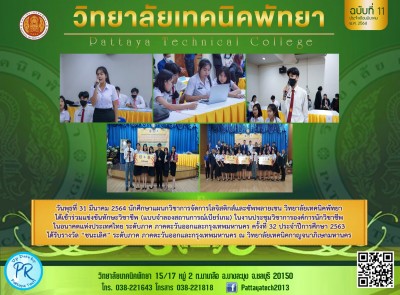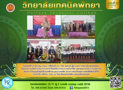 64 03 29 เปิดบ้านวิชาการประจำปี หลังฝึกประสบการณ์วิชาชีพ แสดงผลงานวิชาการนวัตกรรม โครงการวัยรุ่นยุคใหม่ใส่ใจเพศศึกษาและยาเสพติดฯ ประจำปีการศึกษา 2563 วท บางละมุงอินเตอร์เทค