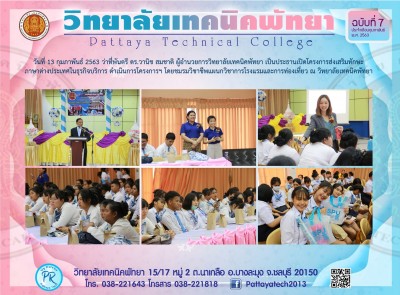 63 02 15 วิทยาลัยเทคนิคพัทยา ร่วมกับ โรงเรียนเมืองพัทยา จัดสอนหลักสูตรระยะสั้น สาขายานยนต์