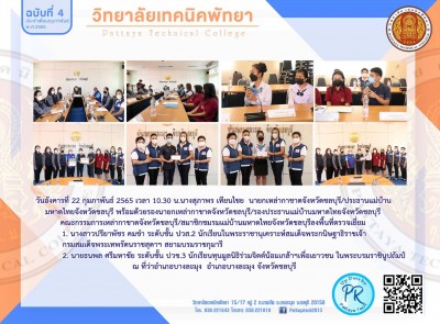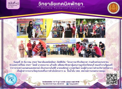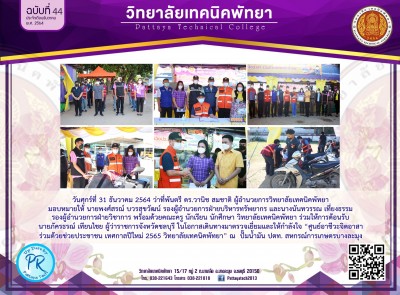 64 12 31 ต้อนรับผู้ว่าราชการจังหวัดชลบุรี ตรวจเยี่ยมศูนย์อาชีวะจิตอาสาร่วมด้วยช่วยประชาชน เทศกาลปีใหม่ 2565 วิทยาลัยเทคนิคพัทยา ณ ปั้มน้ำมัน ปตท สหกรณ์การเกษตรบางละมุง