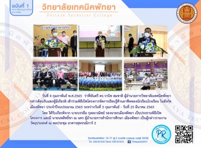 65 02 04 พิธีเปิดโครงการจัดการเรียนรู้ด้านอาชีพของนักเรียนโรงเรียนในสังกัดเมืองพัทยา ประจำปีงบประมาณ 2565 ณ หอประชุมอาคารสุพรรฺการ์ 2 วิทยาลัยเทคนิคพัทยา