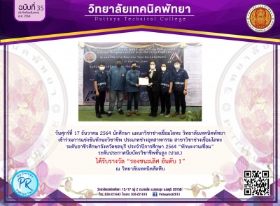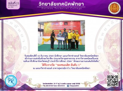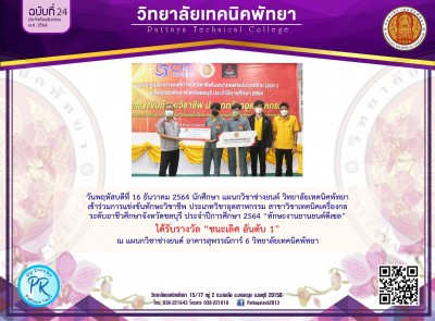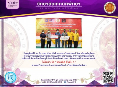 64 12 16 ผลการแข่งขันทักษะวิชาชีพ ประเภทวิชาอุตสาหกรรม สาขาวิชาเทคนิคเครื่องกล ระดับอาชีวศึกษา ประจำปีการศึกษา 2564 ทักษะงานยานยนต์แก๊สโซลีน ณ แผนกวิชาช่างยนต์ อาคารสุพรรณิการ์ 6 วิทยาลัยเทคนิคพัทยา