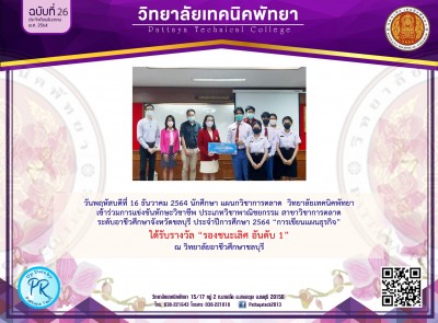64 12 16 ผลการแข่งขันทักษะวิชาชีพ ประเภทวิชาพาณิชยกรรม สาขาวิชาการตลาด ระดับอาชีวศึกษาจังหวัดชลบุรี ประจำปีการศึกษา 2564 การเขียนแผนธุรกิจ ณ วิทยาลัยอาชีวศึกษาชลบุรี