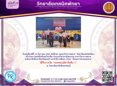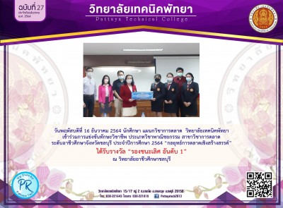 64 12 16 ผลการแข่งขันทักษะวิชาชีพ ประเภทวิชาพาณิชยกรรม สาขาวิชาการตลาด ระดับอาชีวศึกษาจังหวัดชลบุรี ประจำปีการศึกษา 2564 ทักษะการนำเสนอขาย ณ วิทยาลัยอาชีวศึกษาชลบุรี