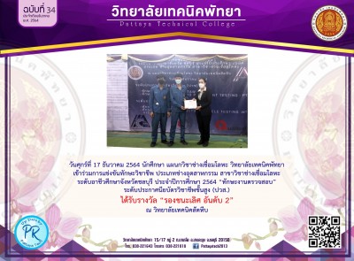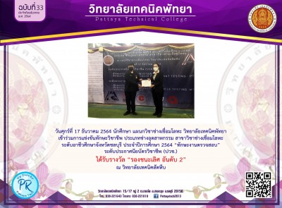 64 12 16 ผลการแข่งขันทักษะวิชาชีพ ประเภทวิชาอุตสาหกรรม สาขาวิชาเทคนิคเครื่องกล ระดับอาชีวศึกษา ประจำปีการศึกษา 2564 ทักษะงานยานยนต์ดีเซล ณ แผนกวิชาช่างยนต์ อาคารสุพรรณิการ์ 6 วิทยาลัยเทคนิคพัทยา