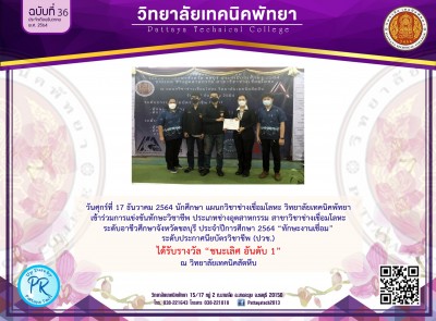 64 12 16 ผลการแข่งขันทักษะวิชาชีพ สาขาวิชาเทคเครื่องกล ระดับอาชีวศึกษาจังหวัดชลบุรี ประจำปีการศึกษา 2564 ทักษะงานปรับอากาศยานยนต์ ณ แผนกวิชาช่างยนต์ อาคารสุพรรณิการ์ 6 วิทยาลัยเทคนิคพัทยา