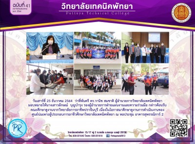 64 12 18 พิธีเปิดโครงการอบรมเชิงปฎิบัติการการตรวจ ATK คัดกรองไวรัสโคโรน่า (COVID-19) ให้กับครูและบุคลากร วิทยาลัยเทคนิคพัทยา ณ หอประชุม อาคารสุพรรณิการ์ 2 วิทยาลัยเทคนิคพัทยา